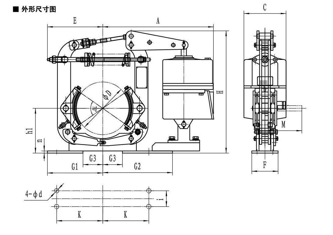 ▲ 常閉式設計,(斷電)彈簧制動,(通電)推動器釋放。